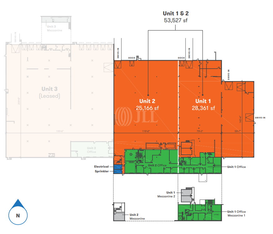 Available square footage 53,527 SF for Units 1 & 2. Demising options are available.
