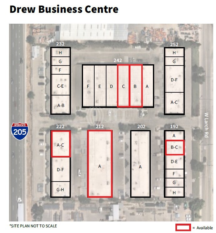 The Drew Business Centre is centrally located in Tracy, CA and allows occupiers to quickly reach both the Bay Area and Central Valley Markets. It consists of seven (7) multi-tenant industrial buildings totaling ±102,000 SF. Units range in size from ±1,452 SF to ±15,488 SF. The project offers excellent access to I-205 and select units offer I-205 visibility and signage opportunities. The property is zoned M1 (Light- Industrial) which caters to a wide variety of industrial users. Each unit has at least one grade level roll-up door.