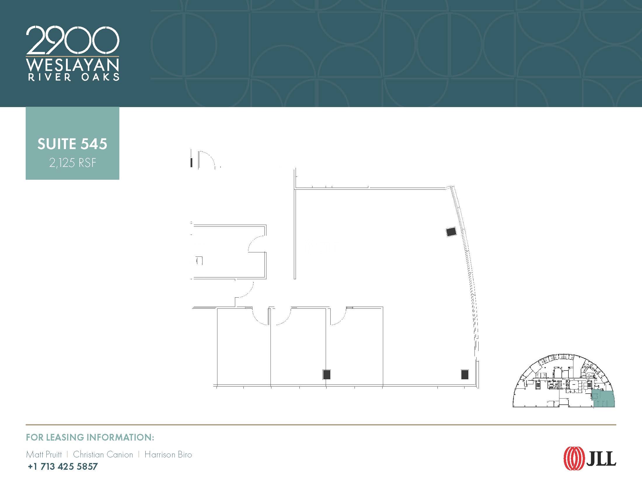 2900 Weslayan is a 136,698-square-foot mixed-use property featuring a six-story Class A office building at the intersection of Weslayan and West Alabama in the desirable Greenway Plaza office submarket. The property offers direct access to the prestigious neighborhoods of River Oaks, Highland Village, and West University. Additionally, 2900 Weslayan is within walking distance of numerous restaurants and retailers in Highland Village Shopping Center, Central Market, and Greenway Commons, as well as premier luxury apartment and condo developments—creating a true live-work-play environment. On-site tenants can enjoy authentic Italian dining and happy hours, a tenant lounge with massage chairs and coffee service, a conference center, and a fully staffed property management office.