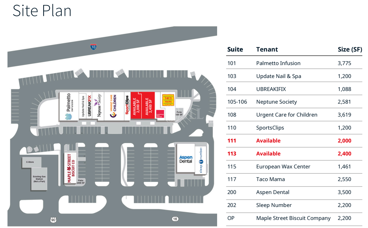 - Close proximity to I-10 (68,459 CPD) and Highway 90 (20,185 CPD)